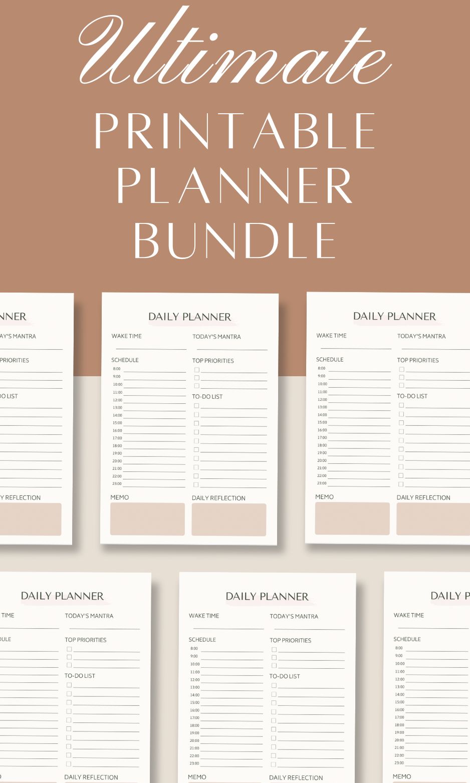 Daily Planner, Weekly Planner, Monthly Planner, Self Care Planner, Daily Reflection, Goal and Habit Tracker, Gratitude Journal and Budget Tracker