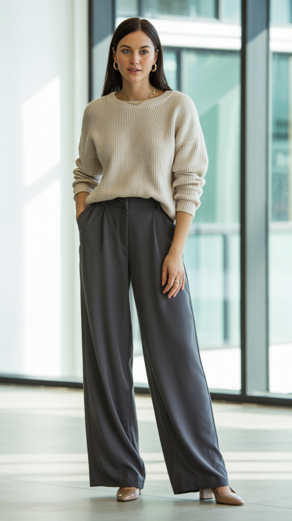 π 4. Knit Top + Wide-Leg Pants