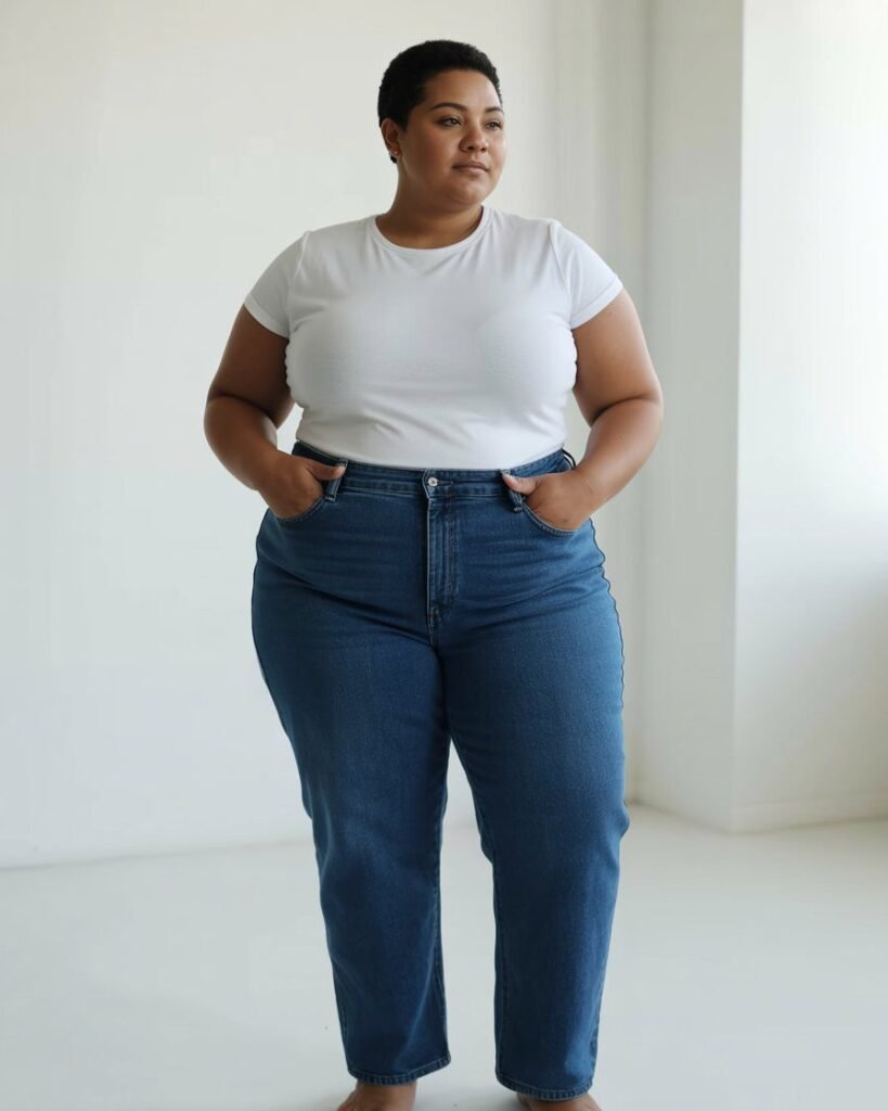 Got a fuller midsection? Go for mid-rise straight jeans or boyfriend jeans. These skim over the tummy and create a smooth silhouette. A little stretch in the fabric helps keep things comfy.