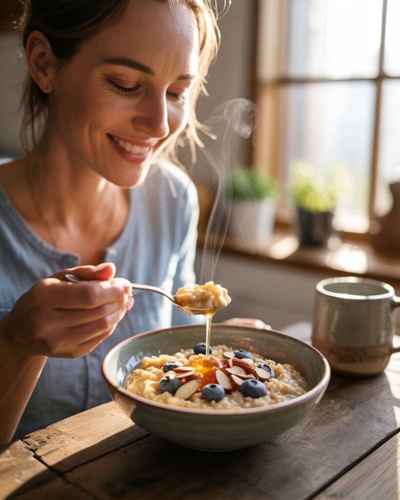 Before reaching for coffee, drink a glass of warm water with fresh lemon. It wakes up your digestive system, boosts hydration, and balances stomach acid.